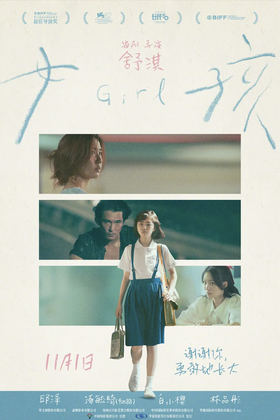 今天,《女孩》全国上映,身为主演的她和导演舒淇,各自都有了新的身份。几个月前,《女孩》入围威尼斯电影节主竞赛单元,在威尼斯,9m88给自己许下愿望:“今年给自己的愿望是‘飞’,这次去威尼斯影展,或许就是另一次起飞的开始。”